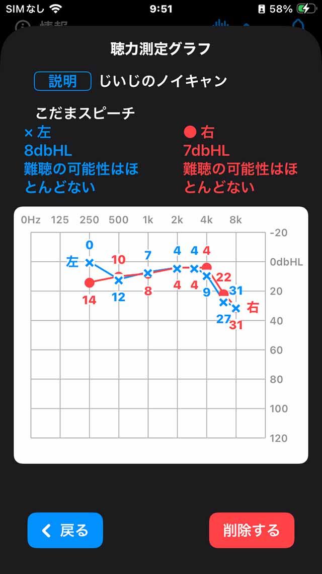 ☆ イヤホンの劣化や聴力の低下を、聴力測定のグラフ表示で確かめる
