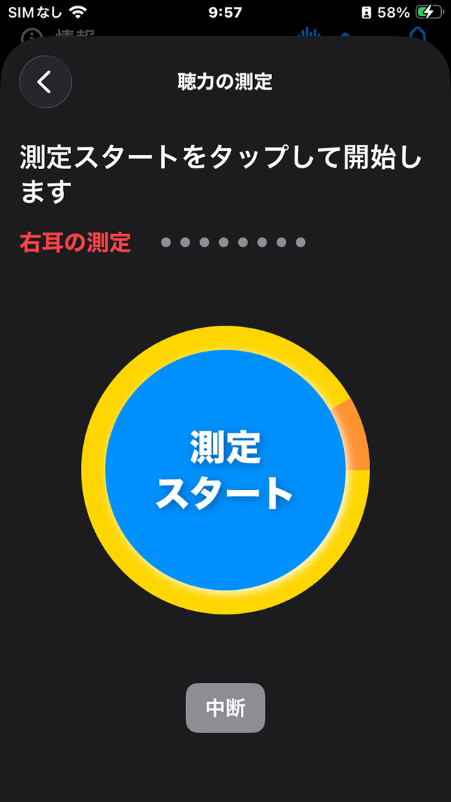 2. ご使用中のイヤホンやヘッドホンを装着し「聴力測定を開始する」