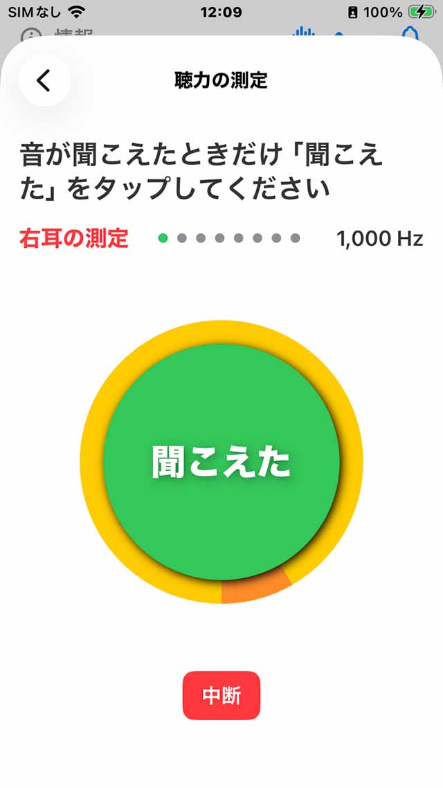 トーンサウンドが聞こえたらタップします 右の測定が完了すると、左の測定が始まります