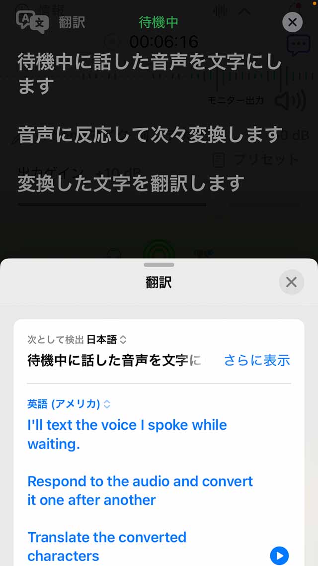 翻訳した文字はコピーしたり、音声合成で発音することができます