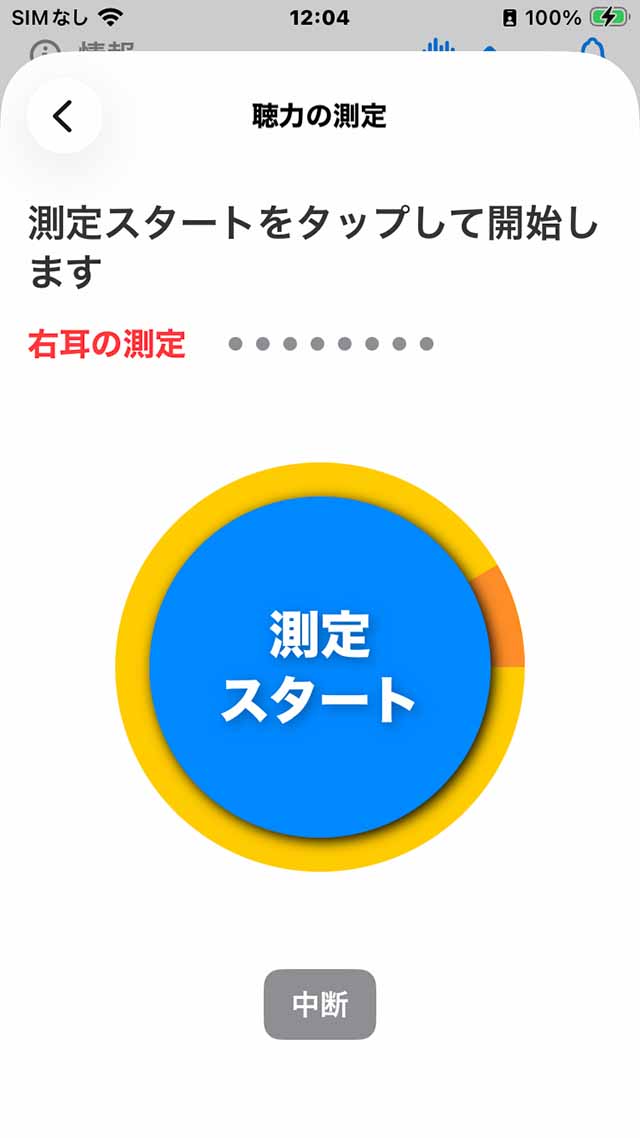 トーンサウンドが聞こえたらタップします 右の測定が完了すると、左の測定が始まります