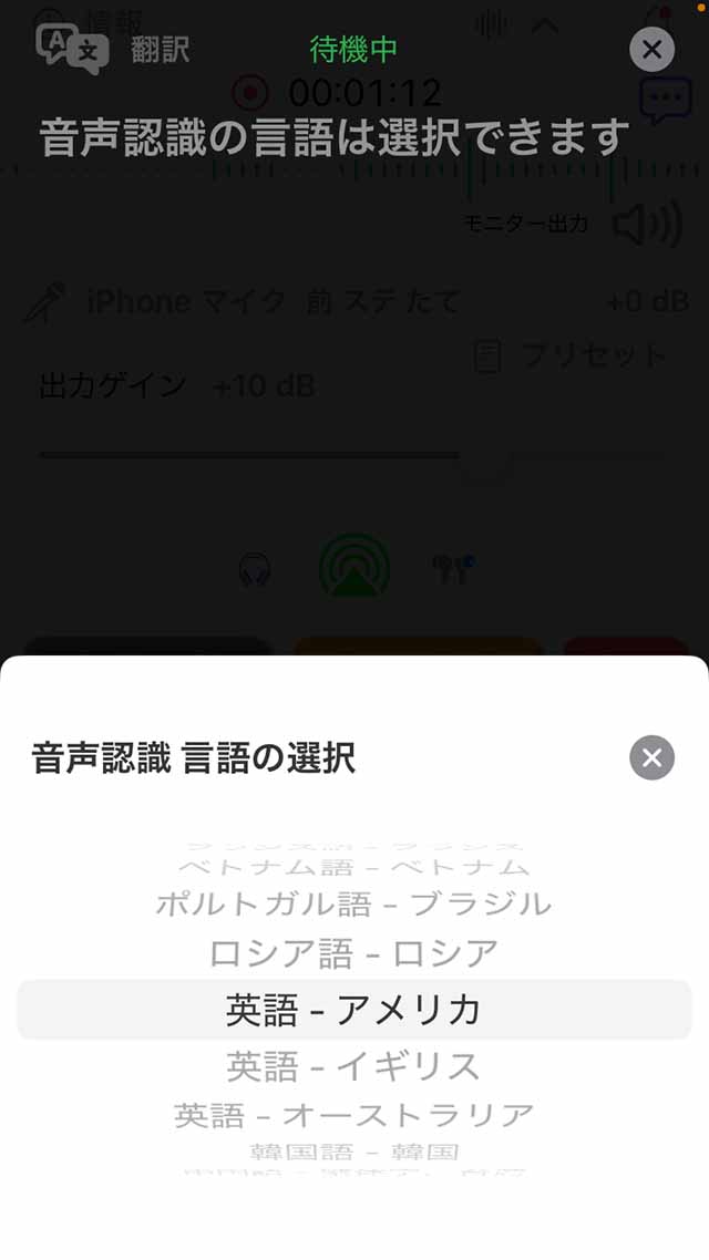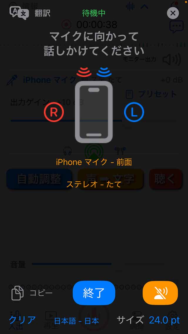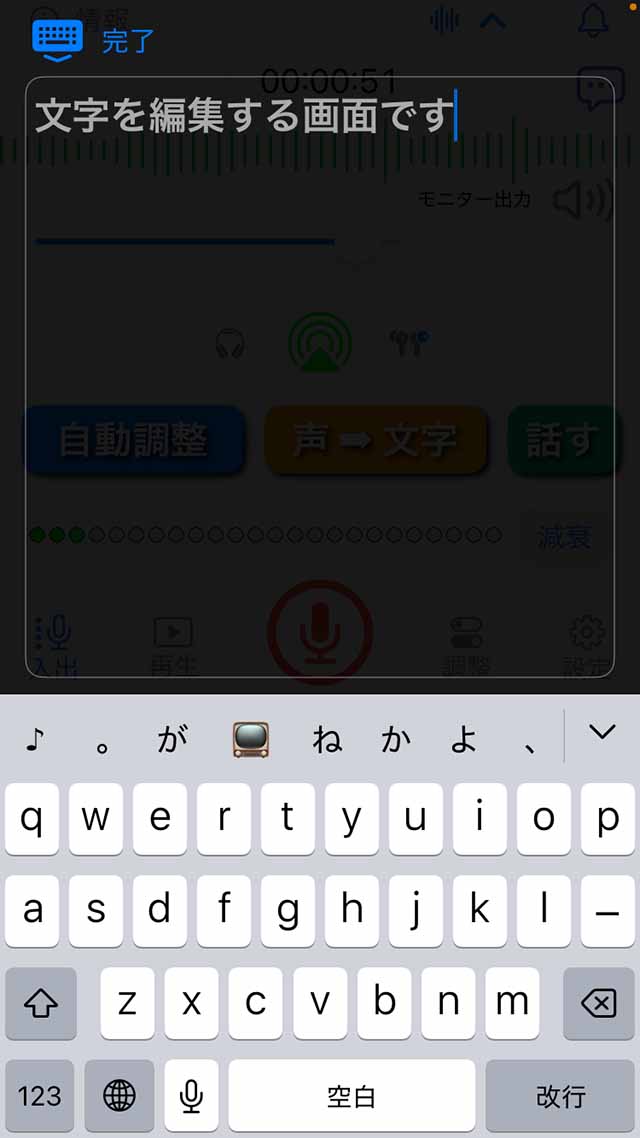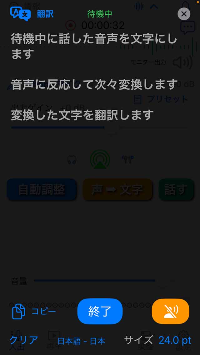 周囲のガヤ音などで音声認識が自動完了しないとき、このボタンで完了し待機中にすることができます