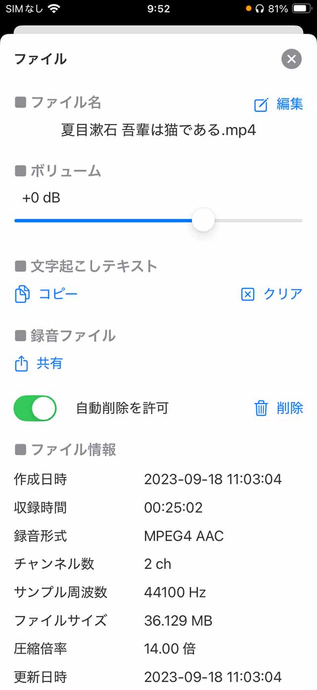 録音ファイルの初期値は録音終了時の入力ゲインです