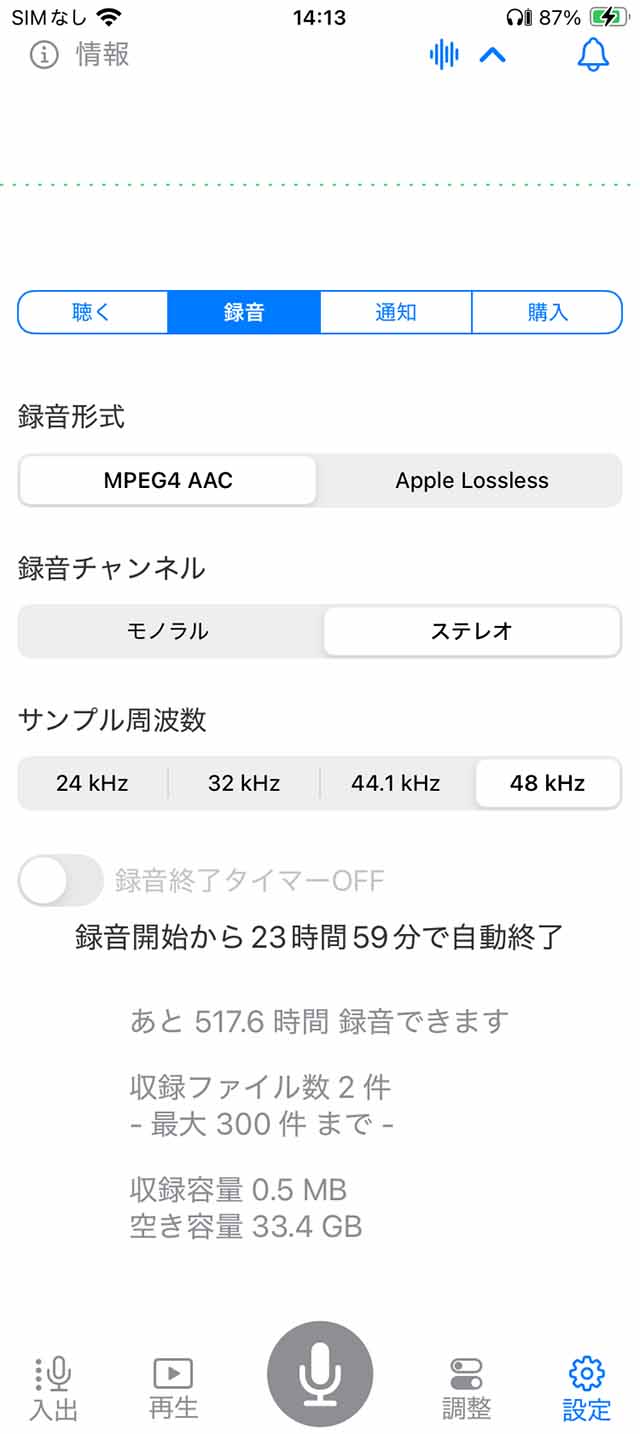 録音形式を「MPEG4 AAC」と「Apple Lossless」から選択します